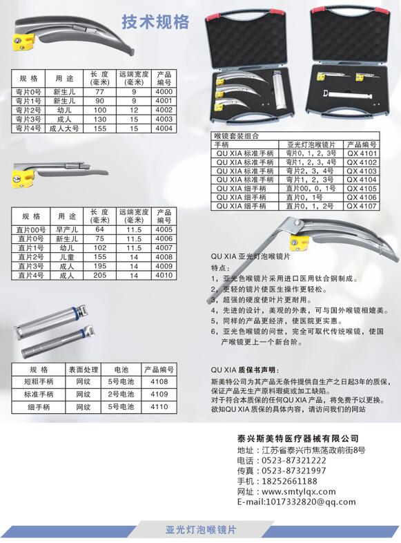6,亚光色喉镜的问世,完全可取代传统喉镜,使国产喉镜更上一个新台阶。